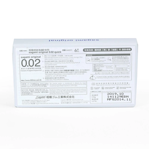 Chất liệu Nhật Bản của bao cao su Sagami Original 0.02 Quick hoàn toàn không gây dị ứng đối Đài Loan với da giá bán lẻ và ở đâu có thể thích ứng hoàn toàn dễ dàng với tự động mọi sản phẩm gel bôi trơn nơi bán mà bạn thích.