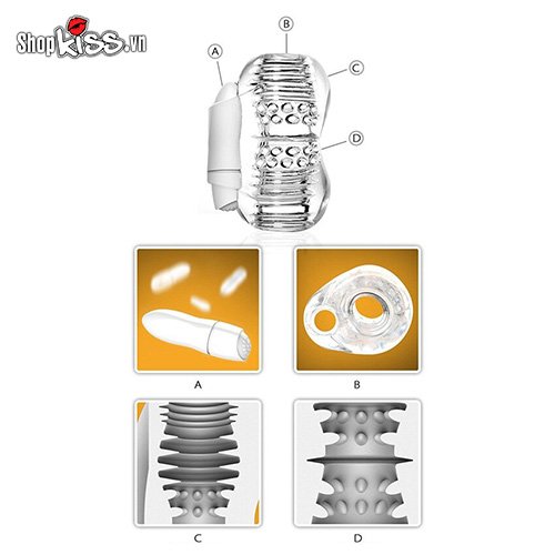 Chi tiết dụng cụ thủ dâm nam bằng silicone có rung.